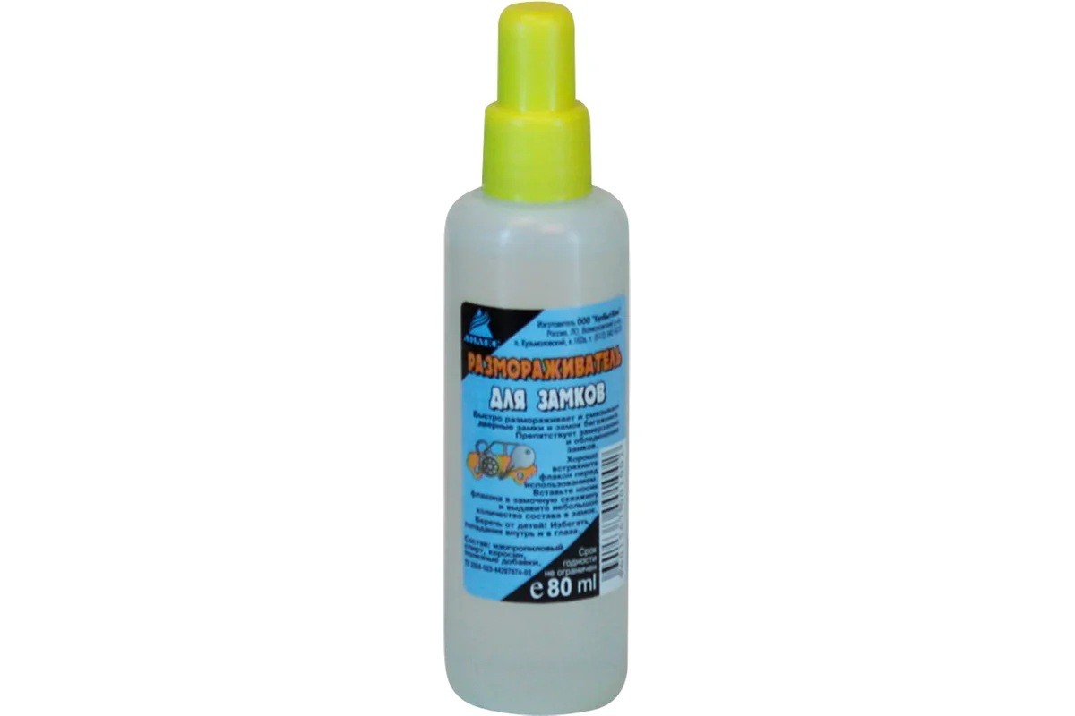 Размораживатель для замков Анлес, 80мл 70102 - жидкое средство на основе спиртов, растворителя, этиленгликоля, силикона, эмульгатора, полезных добавок. Насадка - капельница.