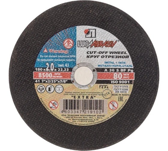 Отрезной абразивный диск диаметром 180 мм (10707) для сухой резки металла. Предназначен для использования с УШМ (болгаркой) с посадочным размером 22.2 мм. Незаменимый инструмент для различных строительных, монтажных и ремонтных операций в быту и небольшой мастерской.