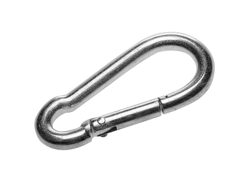 При помощи карабина можно создать быстросъемное соединение, так как карабин пожарный раскрывается одним нажатием на его душку, которая пружинится, и при опускании её карабин опять становится замкнутым.
